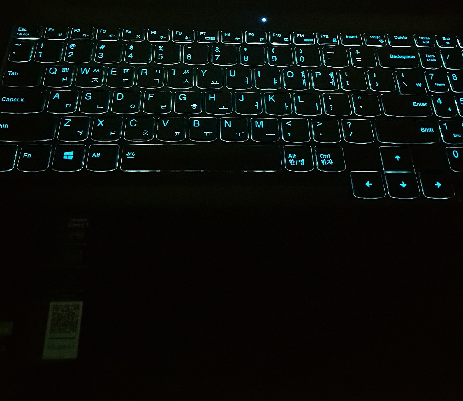 키보드 백라이트는 FN키+스페이스로 2단계 조절이 가능합니다.