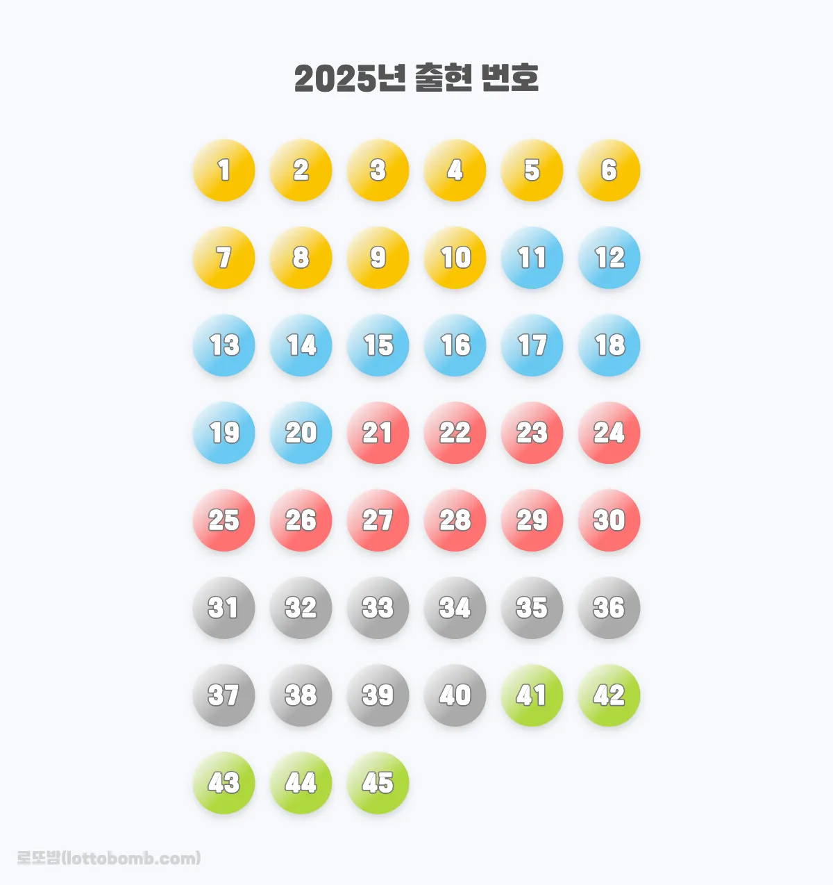 2025년에 1번부터 45번까지 모든 번호가 등장했습니다.