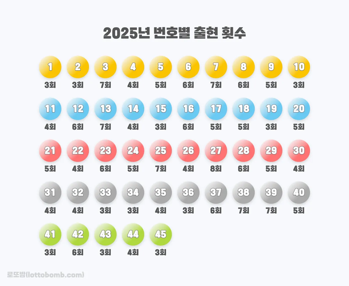 2025년에 1번부터 45번까지 모든 번호가 등장했습니다.
