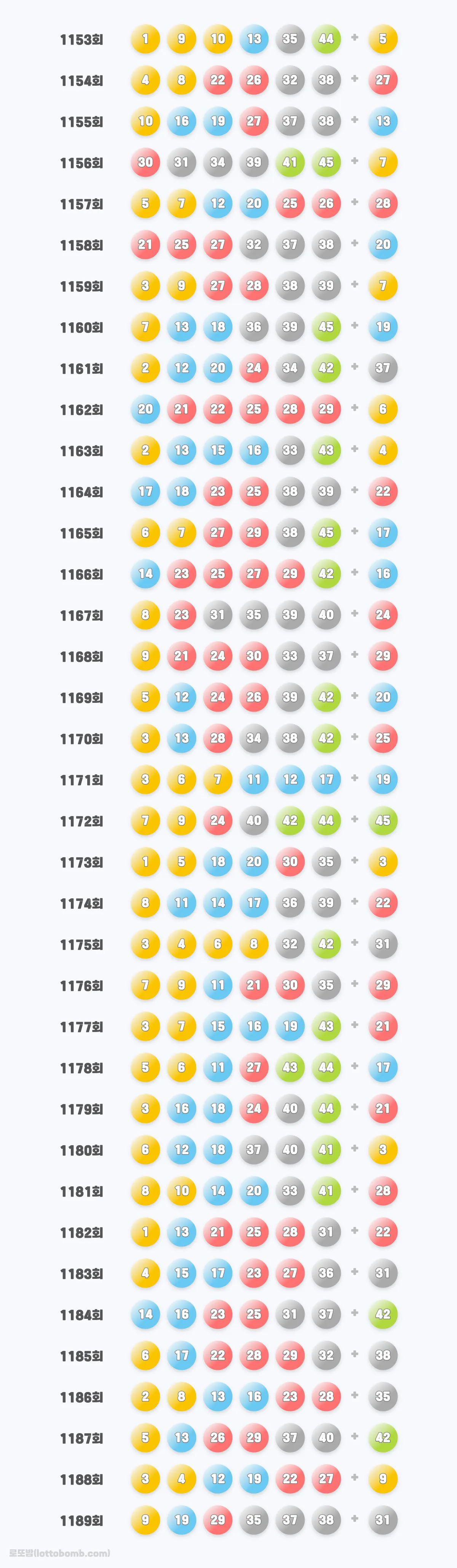 2025년 추첨된 로또 회차는 1153회부터 1189회로 37개의 회차가 진행되었습니다. 월별로 출현했던 로또 번호를 확인해 보겠습니다.